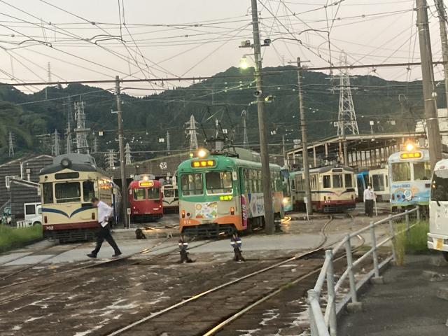 写真は、今朝、始発が出発する直前のとさでん交通桟橋車庫。いいね、この風景。トラムを融合させた未来都市、高知を夢見る朝。