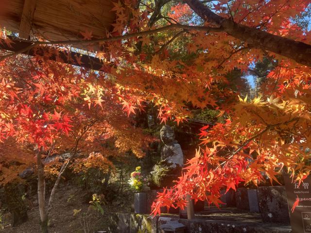 ともあれ竹林寺。この境内も、紅葉が見事。紅葉の向こうに五重塔。手前の坐像は、五智如来像。綺麗やねー。で、先週の定福寺さんも、紅葉が見事でした。