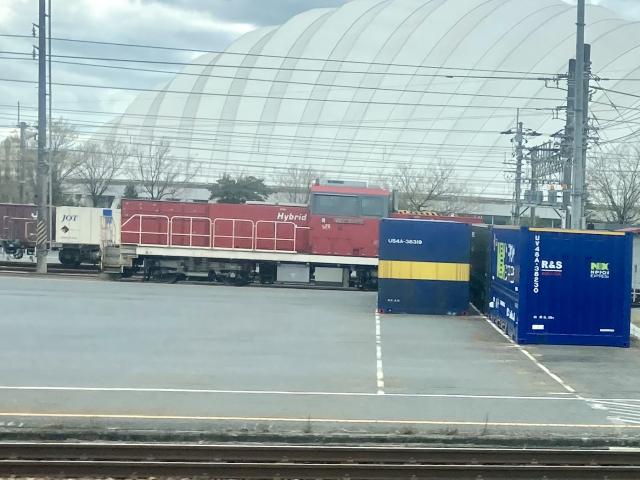 この度JR四国が完成させた3600系はハイブリッド。地球環境にやさしく、静かという触れ込み。一般の気動車とどれだけ違うか、ということで参考になるのがHD300でしょう。ハイブリッド機関車HD300。JRの貨物ターミナルで近年一番見かける凸型の機関車がHD300。貨車の入れ替え作業などに大活躍しているHD300。走行中にエンジン音が響かないし、見ていて動きが軽いよね。いかに静かかは、この動画でもよくわかります。このDD51と比べたら、静かさがよくわかるよね。今日は岡山貨物ターミナルに停車中のHD300を山陽本線から撮影してみました。
