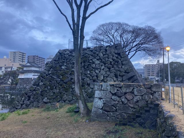 確か、以前は天守台の下に大友宗麟の胸像があったと記憶するけど、今朝行ってみると、ない。確かに府内城と大友宗麟はまったく関係ないので違和感があったのは、確か。そんな事情があったからかどうなのか、今朝の府内城には大友宗麟公はいらっしゃいませんでした。