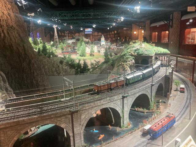 この巨大なジオラマ。1番ゲージという大きなもので、本当に細部まで細部まで再現されてます。最近僕が始めたのとは月とすっぽん、細菌と恐竜、10円玉と銀河系。
