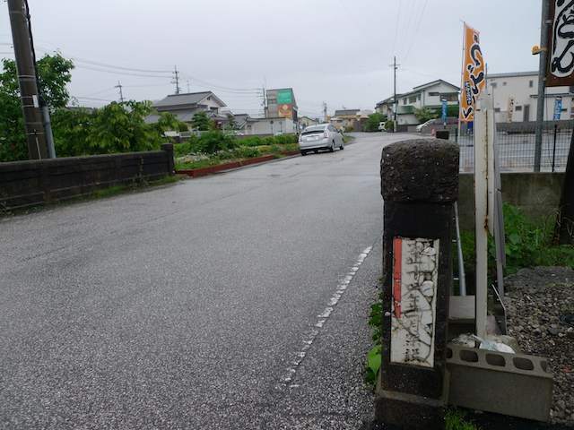さて、ここは、ひまわり乳業の北側、物部川の橋を東へ渡ったところ。野市。現江南市野市。この写真の道のしゅっと北側を道路が走り、この西の「物部川橋」で南国市とつながっちょります。その橋が完成したがは平成6年。それまでは、この道が使われ、この西に物部川を渡る橋が架かっちょりました。つまりこれは旧道。今は、この西の物部川に突き当たって行き止まり。橋の痕跡もありません。