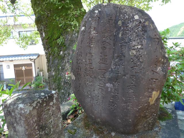 まず一番上は、白鳳の地震で、黒田郡(ごおり)という大きな町が土佐湾に沈んだという伝説を伝えるもの。その下に、宝永の津波がどこまで来たかを伝えます。安政の津波は一丈二尺ですき3.6m。他の記録では8mくらいのもありますき、この辺、多少があります。その下には、洪水や日照りの災害についても刻まれ、二句、高橋さんという方が詠んじょります。判読できん文字は?にしちょります。