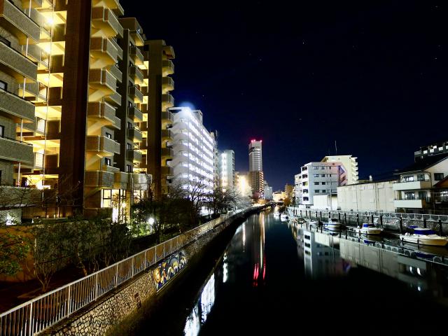 寒いね。早朝の空気が透きとおって、気持ちいい。今朝、出勤途中、久々に堀川を撮影してみました。朝4時過ぎの堀川。これが江戸時代なら、お月様が沈んだあとのこの時刻、真っ暗い堀川が静かにたたずんでいるだけでしょうが、現代になりますとこんなに明るい。