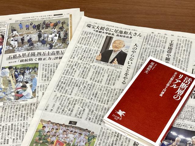 ちょうど今、尾池先生の最新刊「活断層のリアル」を読んでいる途中だったので、記事見て驚きました。そう。昨日も大阪から帰りの汽車で読んでました。この本にも書いてるように、尾池先生は地震学者やけど機械にも強い。そんなことから自前で機械の回路を組んで「微細地震」の観測に取り組み、日本の活断層の状況などを詳細に調査、明らかにして来られました。