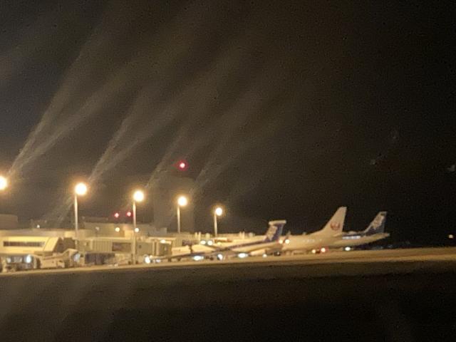 未明の高知空港。今日は始発便で東京。7:10発のJALなんですが、空港ビルが開くのが6:10。朝6時前から、空港ビルの玄関前でたくさんのお客さんが扉が開くのを待ってます、ひやいねー。