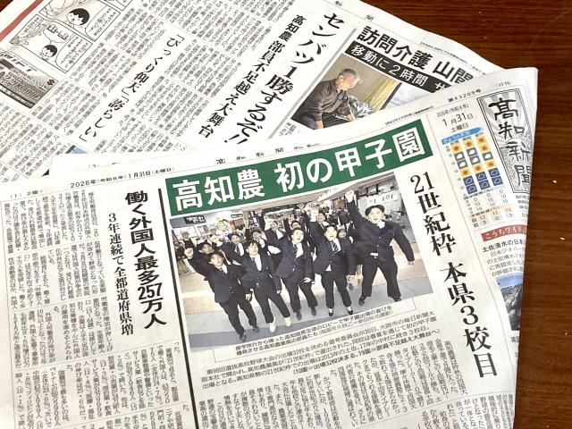 この高知新聞の見出し、気が利いてますねー。この緑色がお馴染みの農高カラー。野球のユニフォームも、駅伝のゼッケンにもあしらわれている緑色。農業を象徴する緑色。甲子園でも、この緑色が弾けることを期待しています。