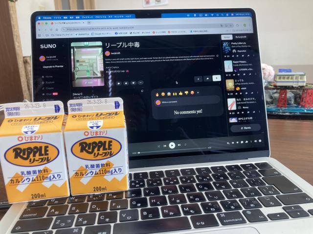 今朝作成した、いや、AIにつくってもらった新曲「僕はリープルが好き」です。昨日も書いたように、まだAIで動画作成するスキルがないので、動画は自作。動画はしょぼいけど、音楽はプロがつくったみたい。いかがでしょうか。